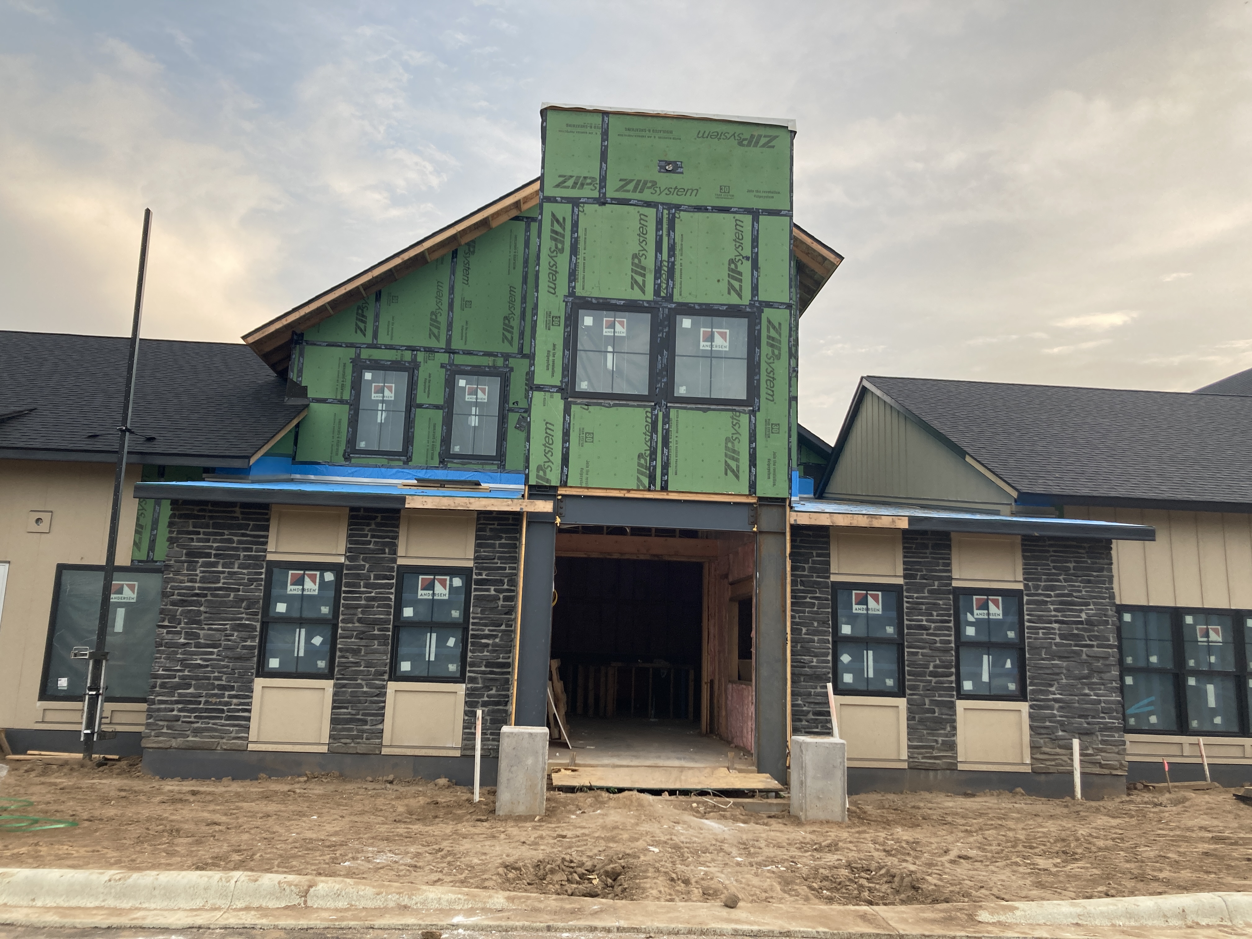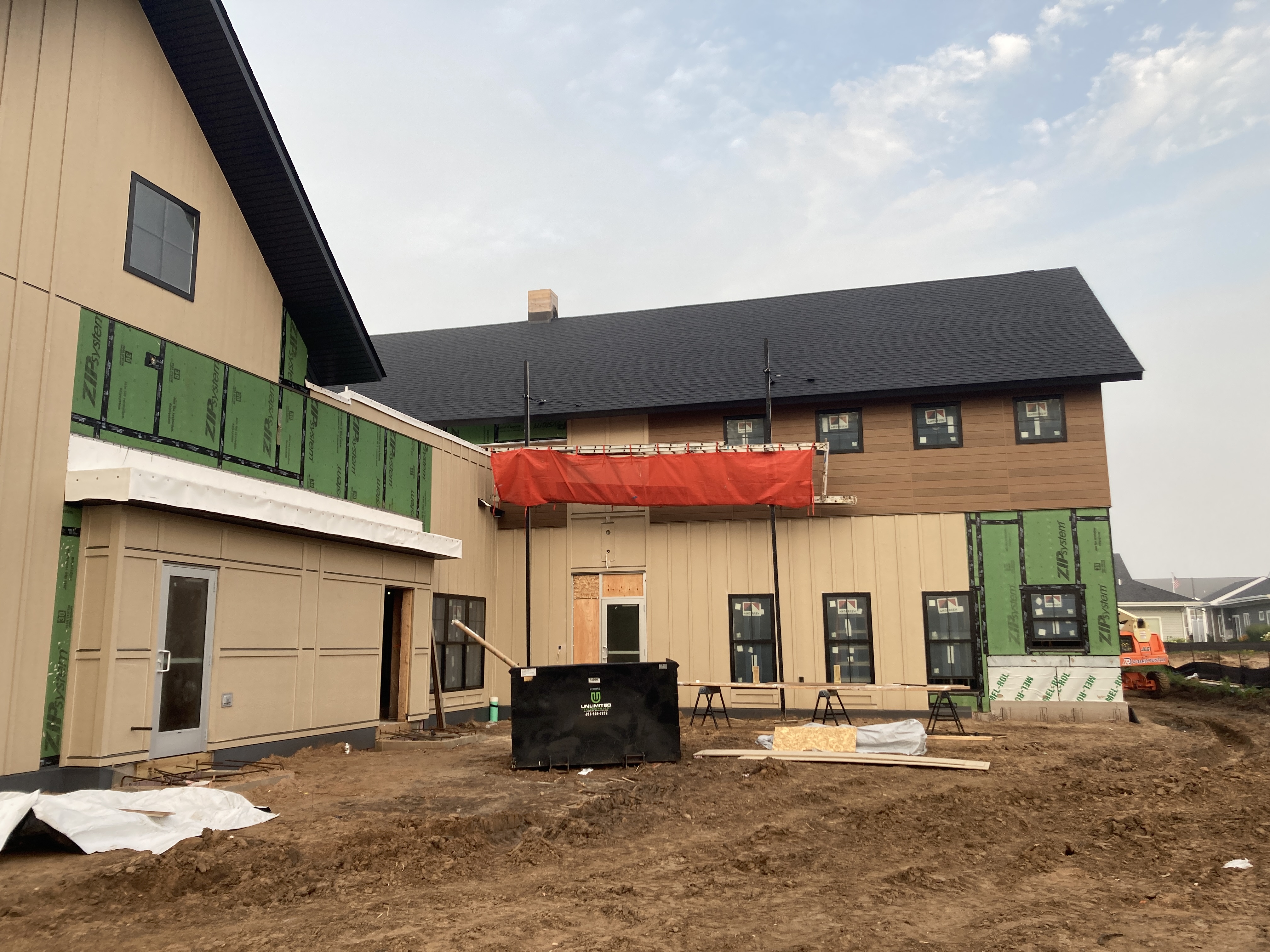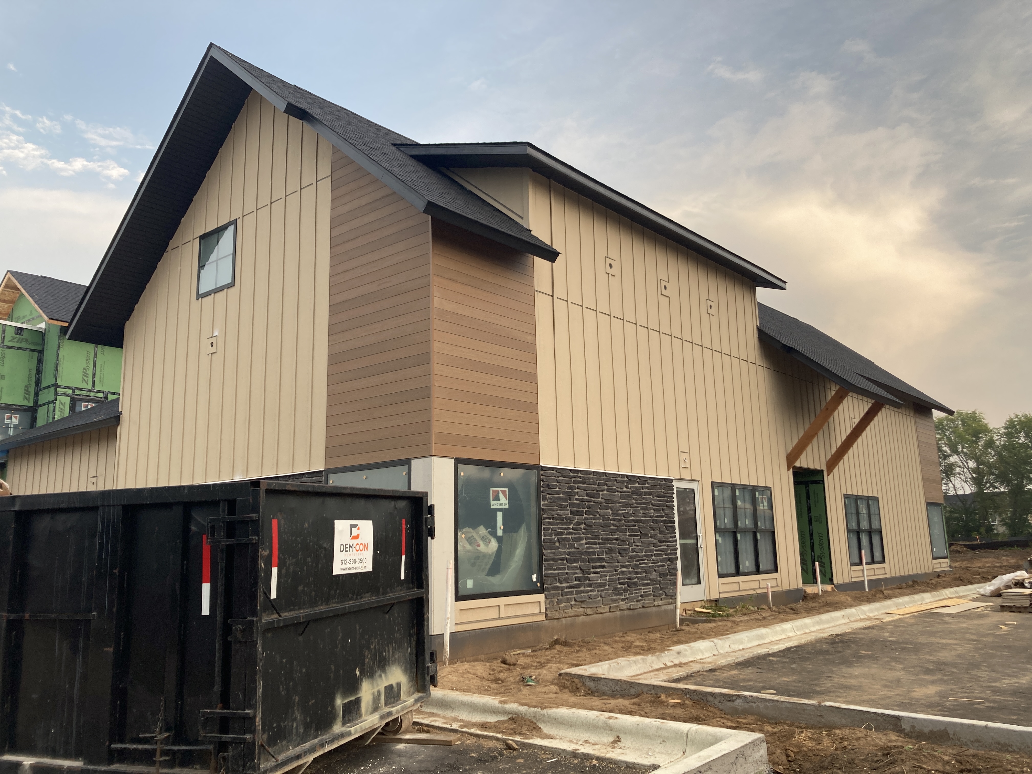 Milestones Early Learning Center in Lake Elmo, MN under construction. Siding installation in progress.