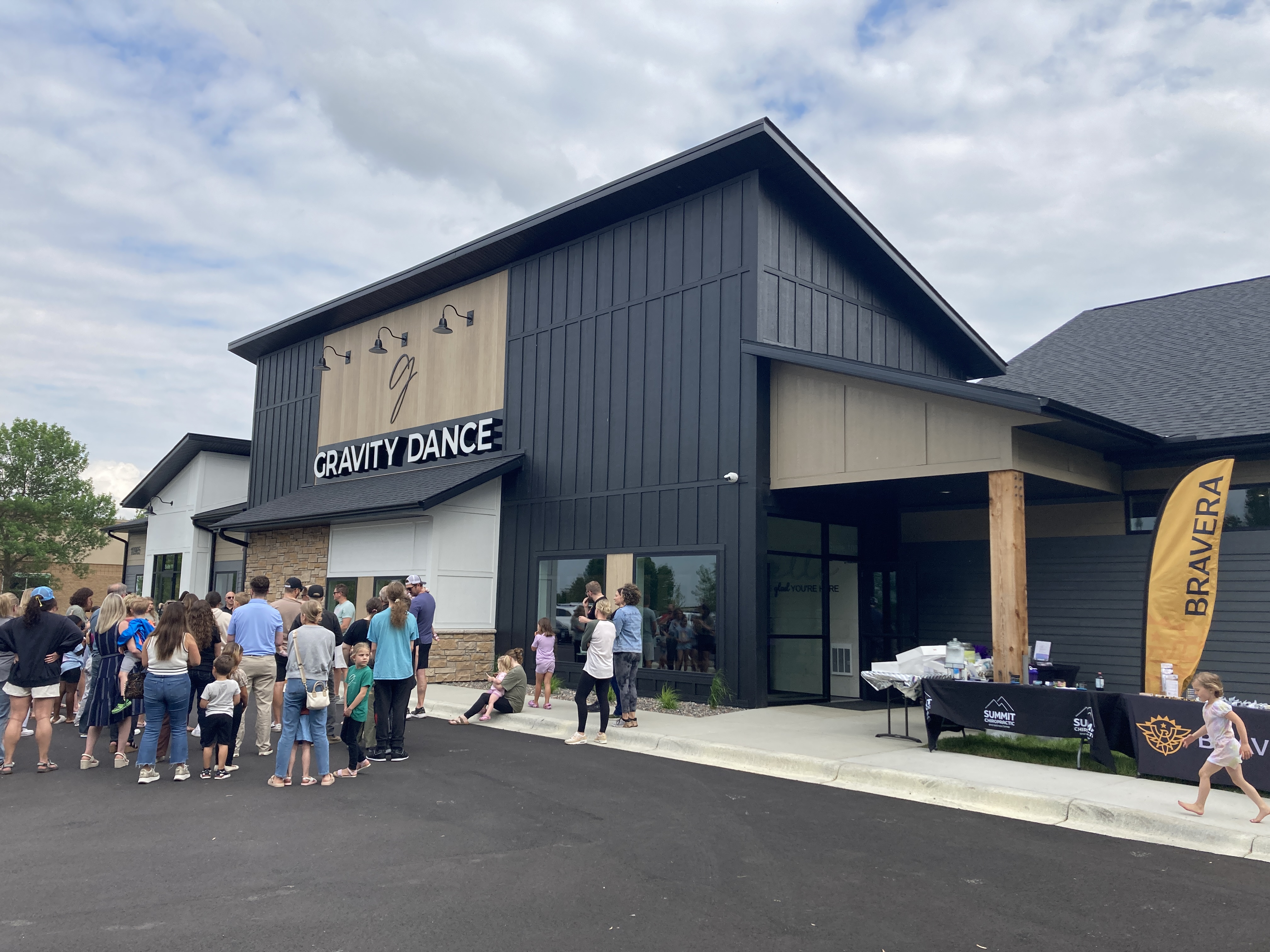 Gravity Dance Studio, Albertville, MN. New dance studio building. 7,000 sf of dance studio space with (2) 24 person studios, (2) 14 person studious, locker, parent viewing, retail, reception, and other support space. Also, included is a 2,544 lease space with its own entrance. Completion scheduled for Spring of 2025.