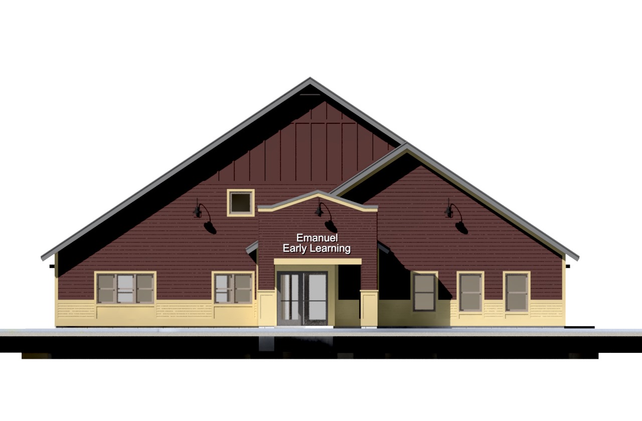 Emanuel Early Learning Center, Hamburg, MN. New early learning center to be located on the Emanuel Lutheran Church. 4,500 sf with (1) 8 capacity infant room, (1) 14 capacity toddler room, (1) 20 capacity preschool room, (1) 18 capacity indoor play area, and other support spaces. Spring 2025 completion.