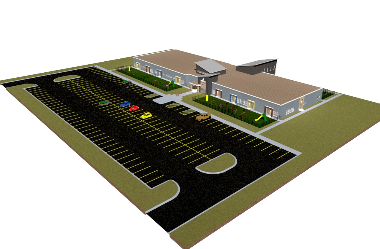 Milestones Early Learning Center. New early learning center (childcare center). 15,200 sf with (2) 12 capacity infant rooms, (1) 14 capacity toddler rooms, (1) 21 capacity toddler room, (5) 20 capacity preschool rooms, (1) 30 capacity prekindergarten/ kindergarten room, (1) 27 capacity sport court, offices, reception, warming kitchen, and other supportive spaces.